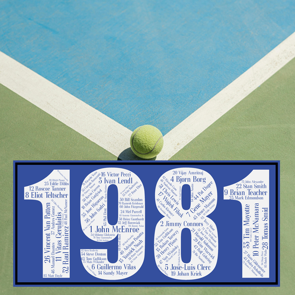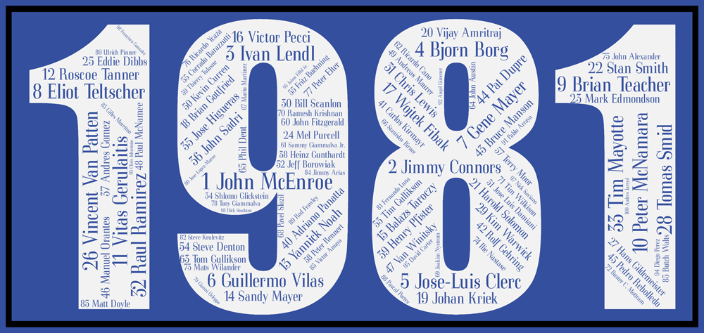 Nous avons travaillé l’affiche 1981 ATP ainsi que toutes les années en se basant sur le dernier classement de l’année. Celui ci est le plus représentatif car il reprend tous les points acquis pendant l’année civile.