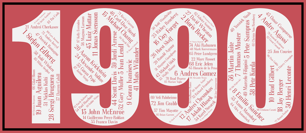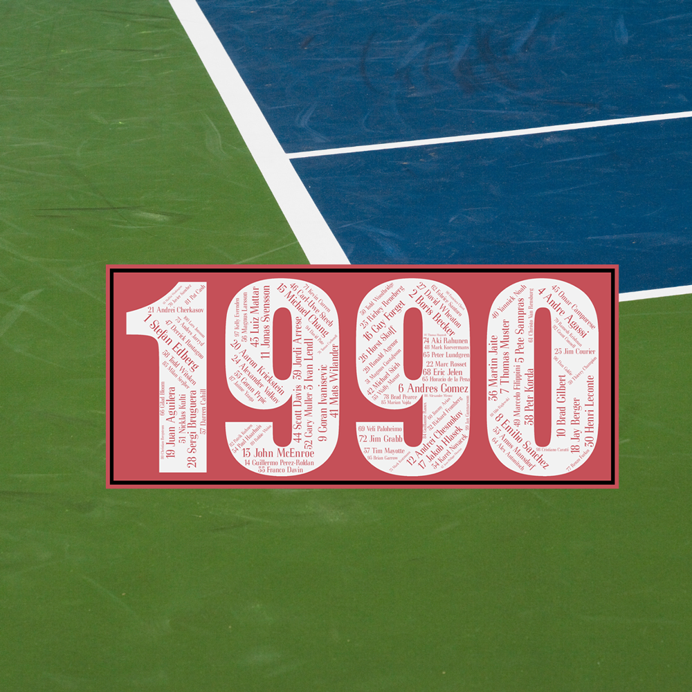Nous avons travaillé l’affiche 1990 ATP ainsi que toutes les années en se basant sur le dernier classement de l’année. Celui ci est le plus représentatif car il reprend tous les points acquis pendant l’année civile.