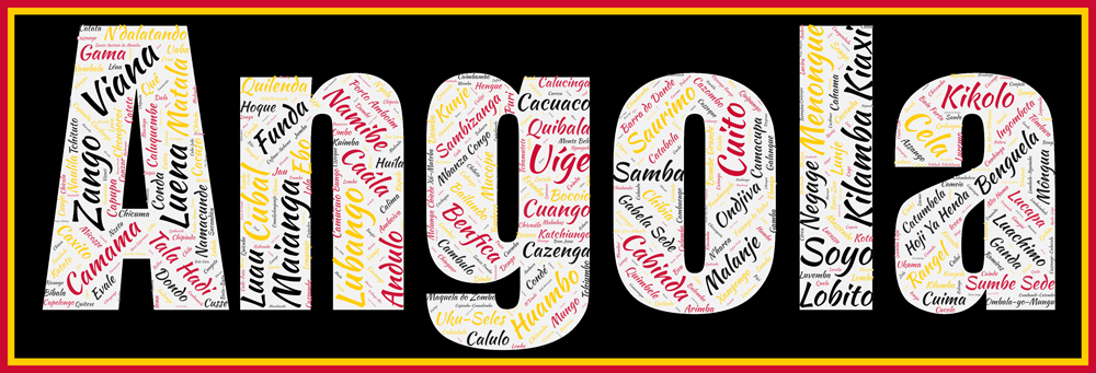 Toutes les villes de l’Angola en un seul coup d’œil présentes dans l’Affiche Angola – v1, ce pays de 1.246 000 km² et de 39 millions d’habitants. 558 communes (Munipality) dans ce cadre ! Vous retrouverez facilement Luanda, Viana, Cacuaco, Belas ou Cazenga mais sont présentes également Bolongongo, Quitexe, Maquela do Zombo . Plusieurs versions sont disponibles avec les couleurs originelles du drapeau des Palancas Negras ! Nous accolons à titre indicatif le drapeau pour que vous puissiez comprendre l’utilisation des couleurs.