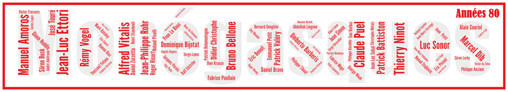 Sous vos yeux, tous les joueurs intégrés au club de la principauté monégasque de 1980 à 1990. Retrouvez les 104 joueurs qui ont jalonné cette décennie, entrainés par Gérard Banide, Lucien Müller, et Arsène Wenger. Voici les 10 premiers joueurs utilisés de la décennie: Ettori, Puel, Amoros, Bijotat, Bellone, Sonor, Dib, Bravo, Fofana e Liegeon. Nous accolons le sigle du club ou le maillot pour l’information des couleurs utilisées dans l’Affiche AS Monaco – Monégasques – Années 80 – v1.
