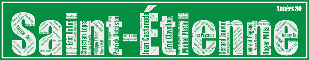 Nous accolons le sigle du club ou le maillot pour l’information des couleurs utilisées dans l’Affiche AS Saint-Etienne – Années 80.