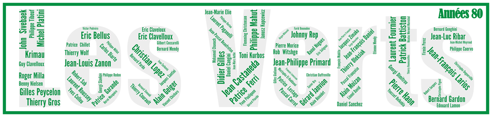 Sous vos yeux, tous les joueurs intégrés au club phare de la Loire. Retrouvez les 97 joueurs qui ont jalonné cette décennie, entrainés par Robert Herbin (80-83 et 87-90), Guy Briet, Robert Philippe, Jean Djorkaeff, Henryk Kasperczak. Voici les 10 premiers joueurs utilisés de la décennie: Castaneda, Primard, Zanon, Daniel, Ferri, Oleksiak, Gros, Battiston, Clavelloux et Ribar. Nous accolons le sigle du club ou le maillot pour l’information des couleurs utilisées dans l’Affiche AS Saint-Etienne – Les Verts – Années 80 – v2.