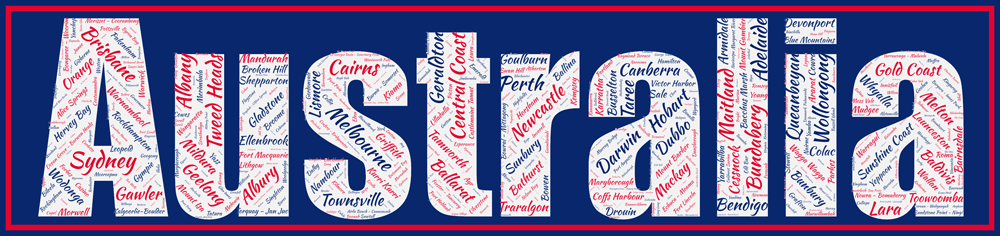 Vous retrouverez facilement Sidney, Melbourne, Canberra,  ou Perth mais sont présentes également Arrawarra, Renmark, Dunsborough.