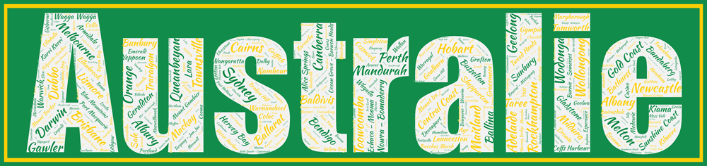 Vous retrouverez facilement Sidney, Melbourne, Canberra, ou Perth mais sont présentes également Arrawarra, Renmark, Dunsborough.