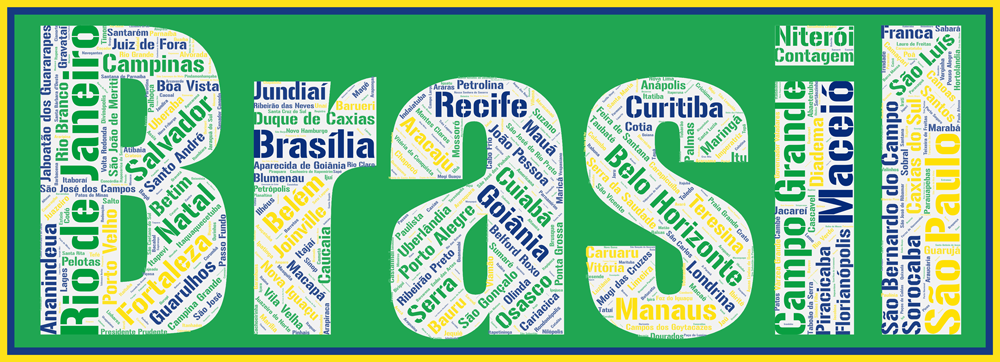 Toutes les villes du Brésil dans l’Affiche Brésil – Brasil – v1