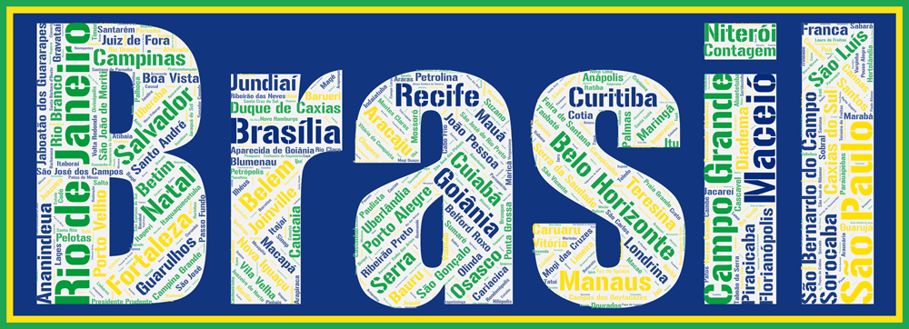 Toutes les villes du Brésil dans l’Affiche Brésil – Brasil – v3