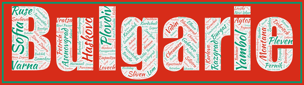 Vous retrouverez facilement Sofia, Plovdiv, Varna ou Burgas mais sont présentes également Pavlikeni, Ljaskovec, Gramada. Plusieurs versions sont disponibles avec les couleurs originelles du drapeau du pays des roses !