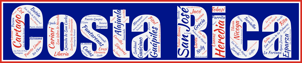 Toutes les villes du Costa Rica dans l’Affiche Costa Rica – v2