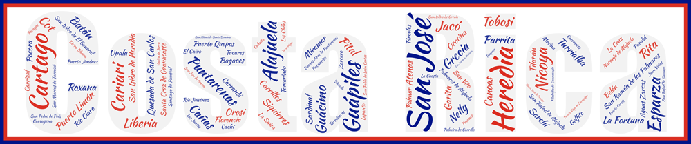 Toutes les villes du Costa Rica dans l’Affiche Costa Rica – v3