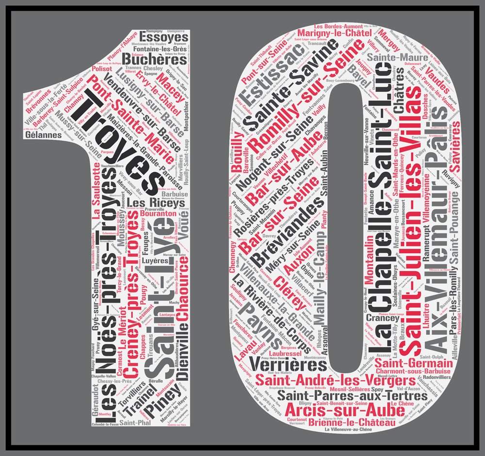 Vous retrouverez facilement Troyes, Romilly-sur-Seine ou La Chapelle-Saint-Luc. Mais saurez vous retrouver ? :La Fosse-Corduan, Villeneuve-au-Chemin, Racines …
