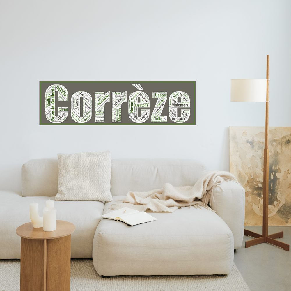 Découvrez toutes les communes du département de la Corrèze aux couleurs du département avec l’Affiche département Corrèze !