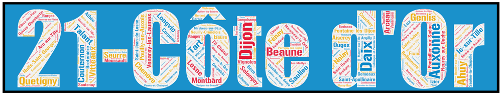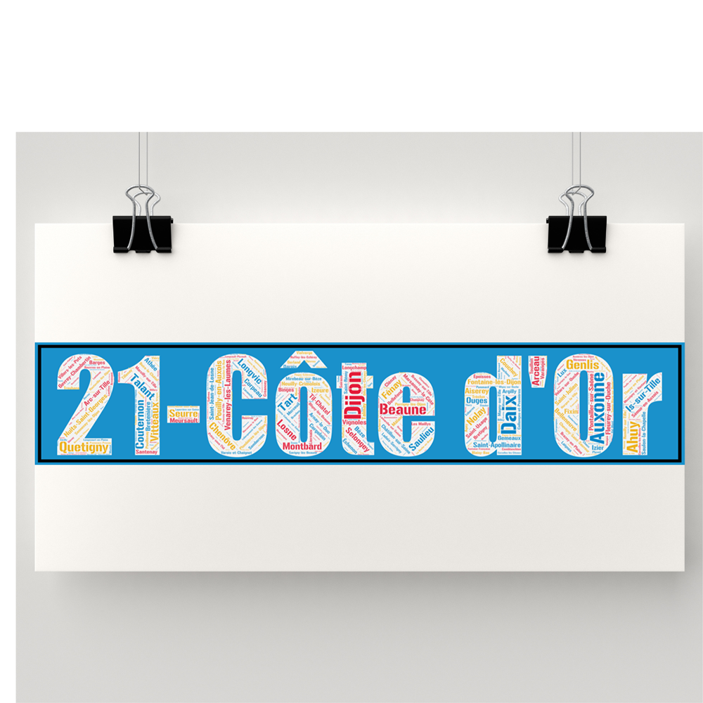 Découvrez toutes les communes du département de la Côte d’Or aux couleurs originales avec l’Affiche département Côte d’or +21 !!