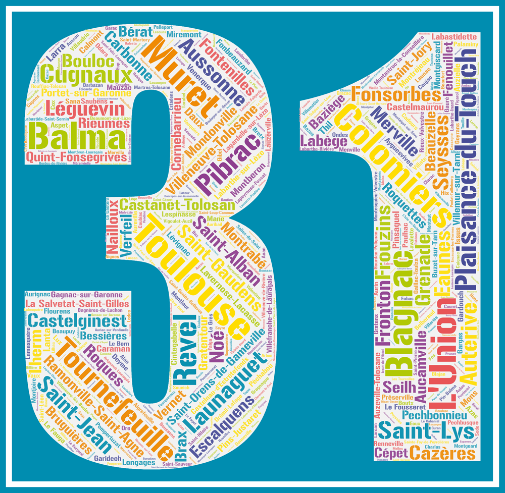 Découvrez toutes les communes du département de la Haute-Garonne aux couleurs du département avec l’Affiche département de la Haute-Garonne – 31 – v1 !