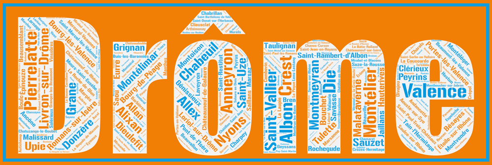 Découvrez toutes les communes du département de la Drôme aux couleurs originales avec l’Affiche département Drôme – Drômois – v2 !!
