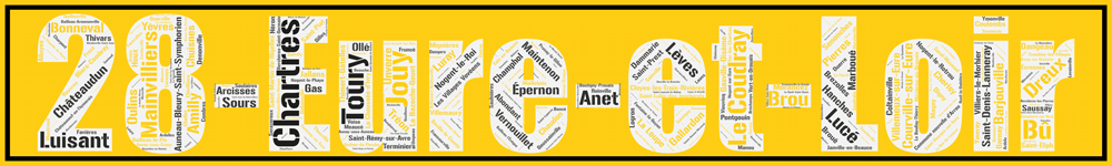Découvrez toutes les communes du département de l’Eure-et-Loir aux couleurs originales avec l’Affiche département Eure-et-Loir +28 – v1 !