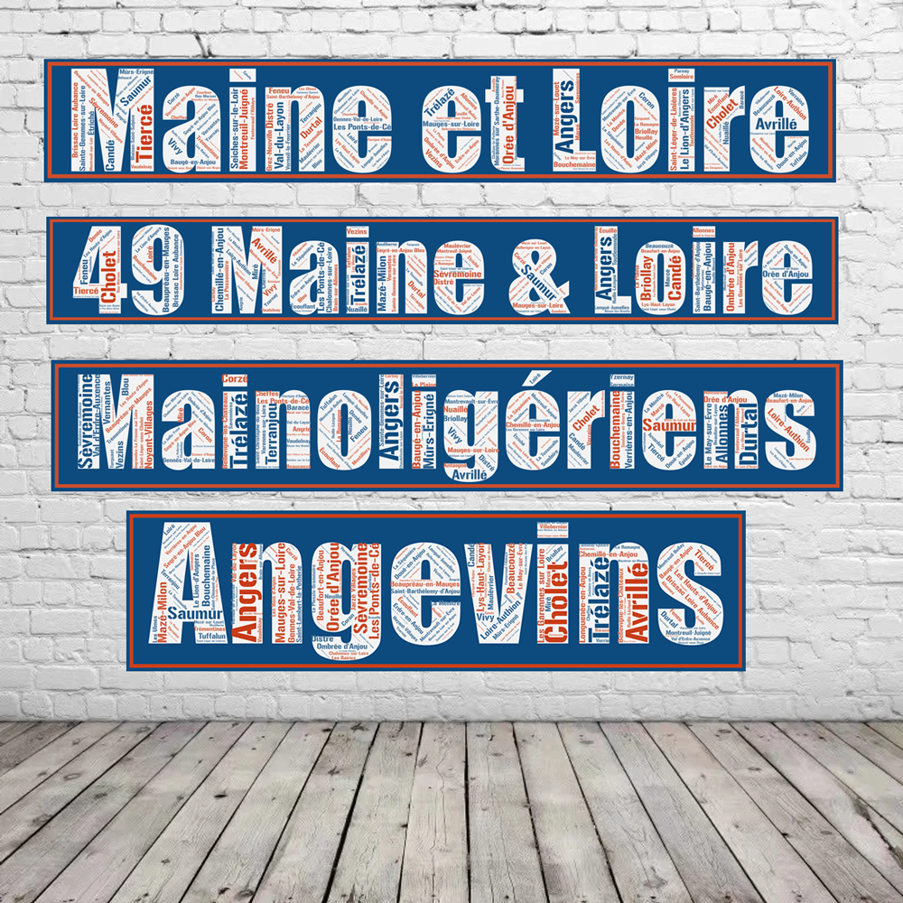 Nous apposons sous la création le logo du département pour comprendre l’utilisation des couleurs que nous apposons sur nos créations (Couleurs RGB à l’identique). L’Affiche département Maine-et-Loire – Mainoligériens – v1 possède ses différentes versions : son numéro, son nom, son numéro + son nom, son ou ses gentilés. Découvrez les autres créations !