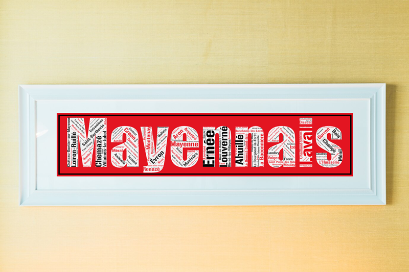 Affichez vos racines avec toutes les communes du département de la Mayenne aux couleurs locales avec l’Affiche Département Mayenne – Mayennais – v2 !