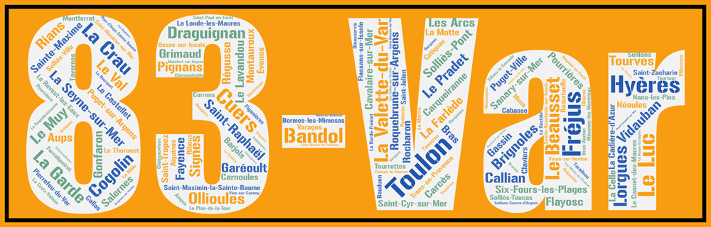 Affichez vos racines avec toutes les communes du département du Var aux couleurs locales avec l’Affiche département Var +83 – v1 !