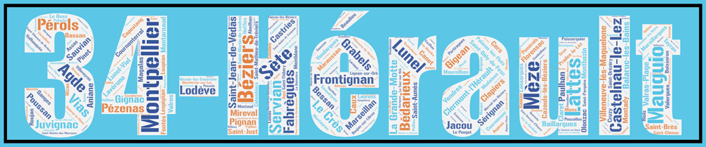 Vous retrouverez facilement Montpellier, Béziers, Sète. Mais saurez-vous retrouver ? :Montady, Romiguières, Pardailhan. Les 342 communes sont réparties dans le nom et le numéro du département .