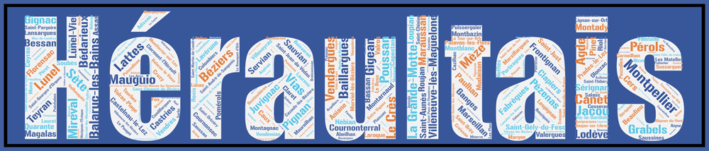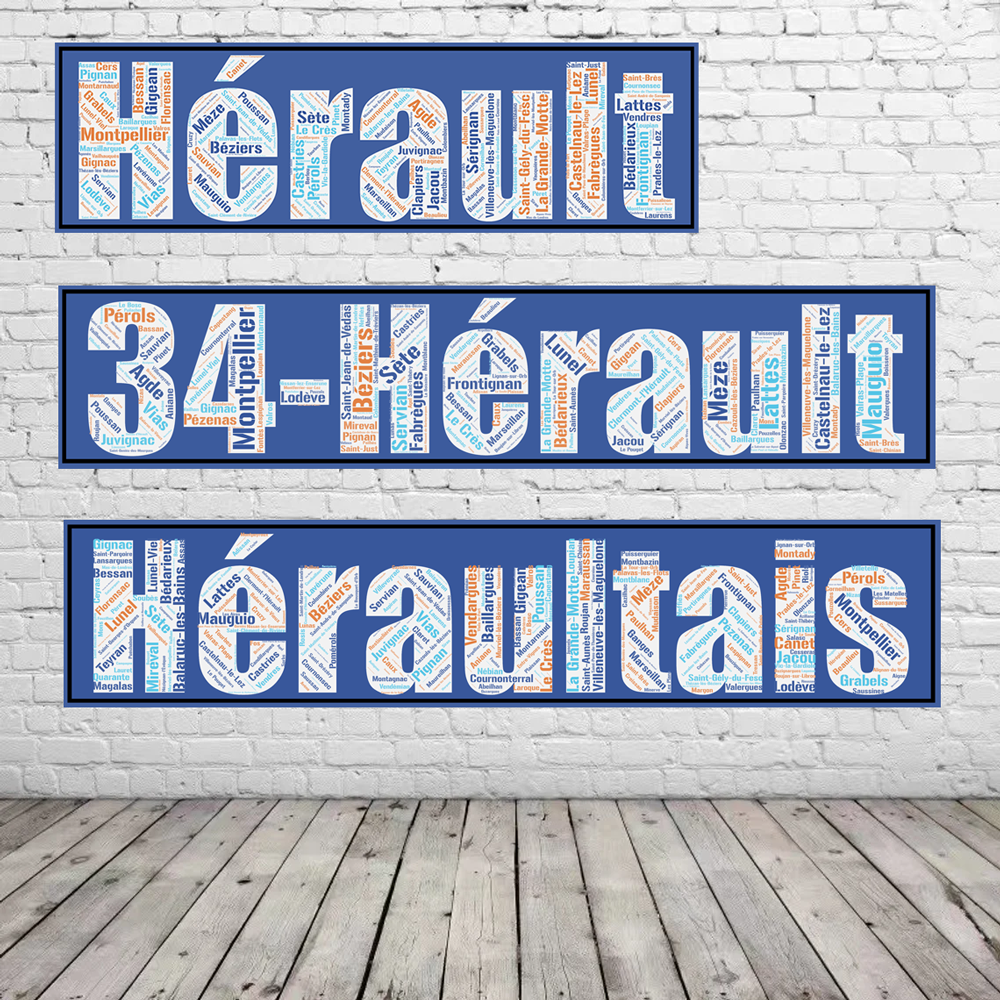 Découvrez toutes les communes du département de l’Hérault aux couleurs originales avec l’Affiche du département de l’Hérault – Héraultais – v2!