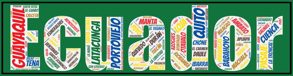 Toutes les villes de l’Equateur dans l’Affiche Equateur – Ecuador – v6