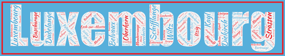 Vous retrouverez facilement Luxembourg, Esch-sur-Alzette, Dudelange ou Schifflange mais sont présentes également Reckange-sur-Mess, Heinerscheid, Lentzweiler. Plusieurs versions sont disponibles avec les couleurs originelles du drapeau du Gibraltar du Nord.