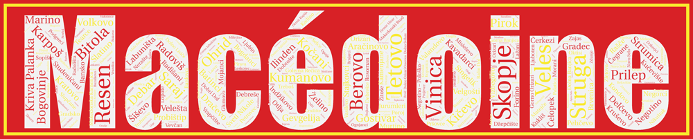 Vous retrouverez facilement Skopje, Kumanovo, Bitola ou Prilep mais sont présentes également Čegrane, Dolno Palčište, Šipkovica. Plusieurs versions sont disponibles avec les couleurs originelles du drapeau du Pays du Soleil.