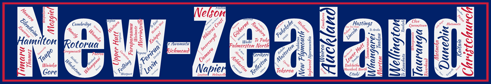 Vous retrouverez facilement Auckland, Christchurch, Wellington ou Hamilton mais sont présentes également Clive, Winton, Wakefield.