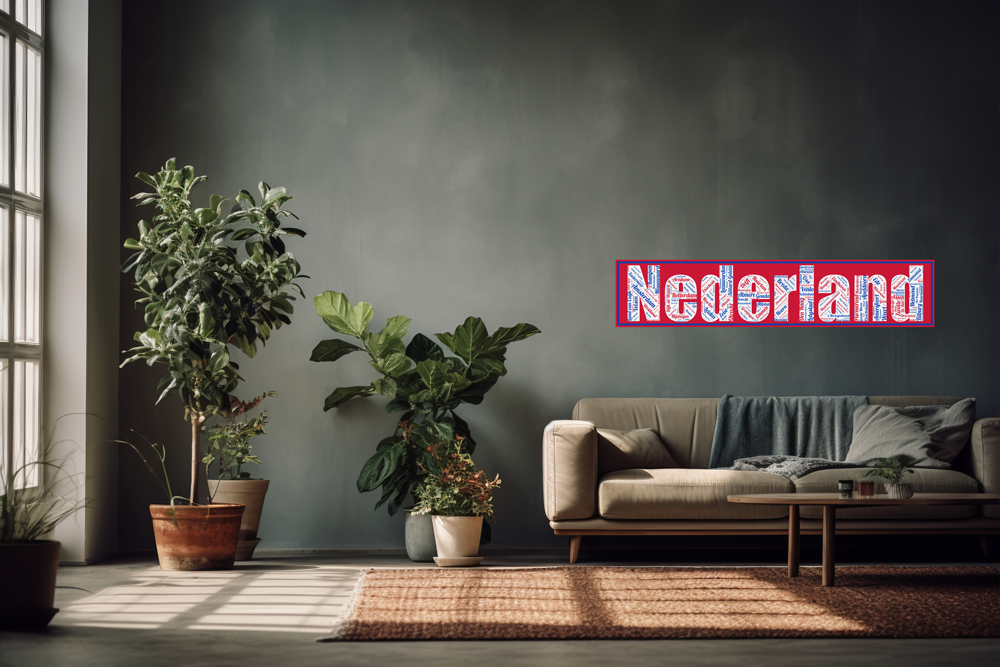 De plus, le drapeau du pays est accolé à titre informatif afin de comprendre les couleurs utilisées et une mise en situation afin de donner vie à l’Affiche des Pays-Bas – Nederland.