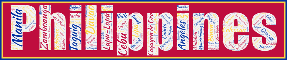 Toutes les villes des Philippines ( de plus de 40 000 habitants) en un seul coup d’œil présentes dans l’Affiche Philippines – v2. 738 communes (municipality) dans cette affiche ! Vous retrouverez facilement Manila, Quezon City, mais sont présentes également Cebu, Davao, Tagaytay.