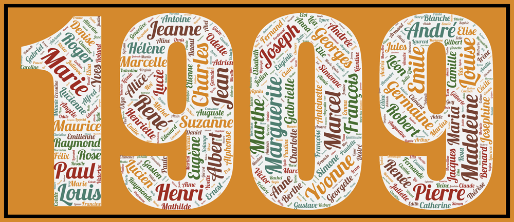 Redécouvrez tous les prénoms les plus donnés de cette génération 1909 et vous remonterez le temps ! Les 500 prénoms les plus donnés figurent dans l’affiche pour l’année travaillée!!! issus des data de l’INSEE.