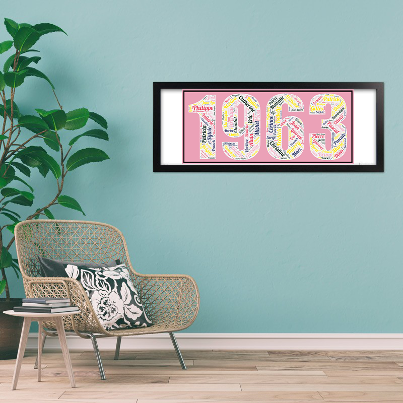 1963 est la quatrième année de notre collection consacrée aux prénoms des années 60 avec l’affiche prénoms année 1963.