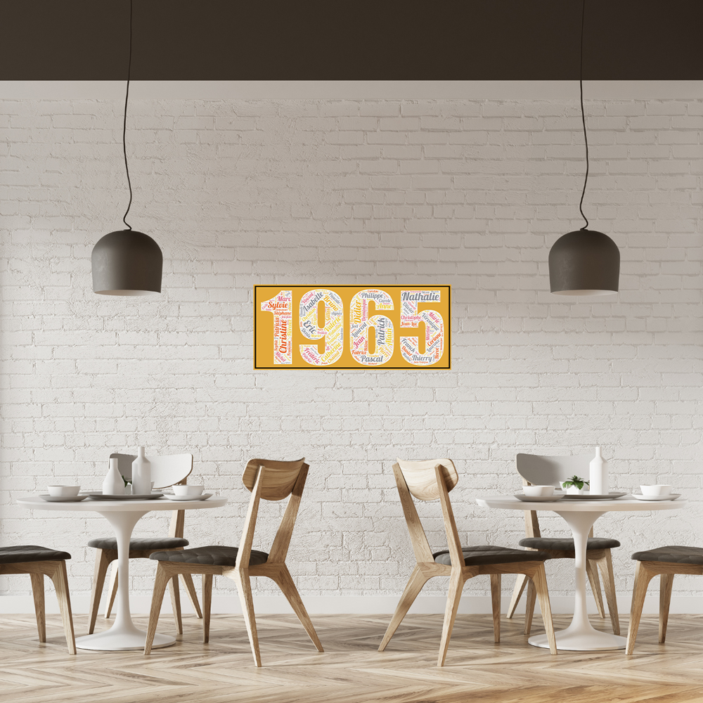 1965 est la sixième année de notre collection consacrée aux prénoms des années 60 avec l’affiche prénoms année 1965.