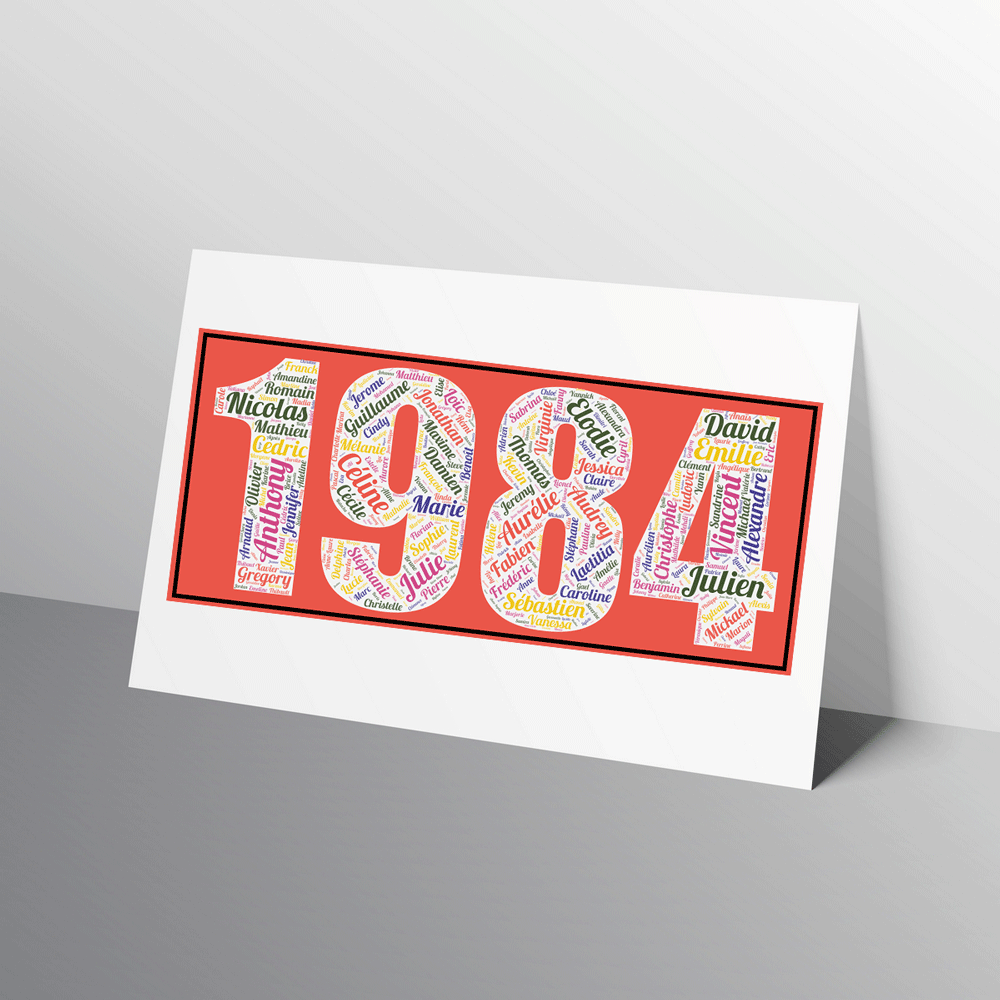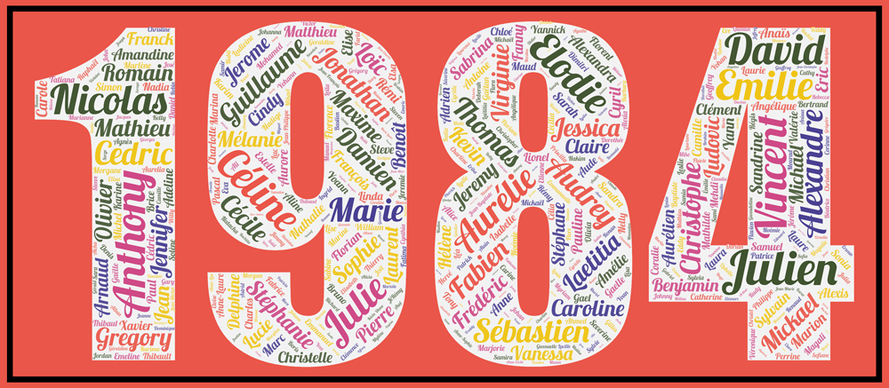 1984 est la cinquième année de notre collection consacrée aux prénoms des années 80 avec l’affiche prénoms année 1984.