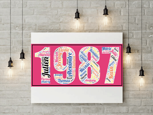 1987 est la huitième année de notre collection consacrée aux prénoms des années 80 avec l’affiche prénoms année 1987.