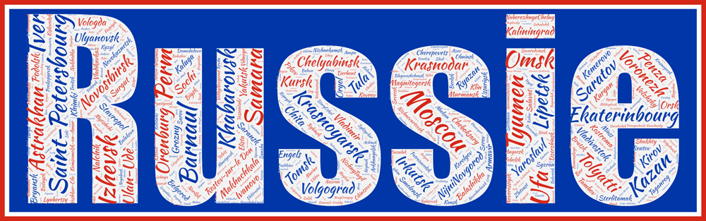 Les plus grandes communes de la Russie en un seul coup d’œil présentes dans l’Affiche Russie. 801 communes dans ce cadre !